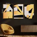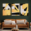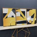 This set of three crystal glass art panels presents a study in geometric abstraction. Each panel features a unique composition of geometric shapes, rendered in a striking palette of black, white, and gold. The designs explore the interplay of form and color, creating a visually dynamic and modern aesthetic. The crystal glass medium enhances the clarity of the colors and the crispness of the geometric lines, providing a high-definition viewing experience.