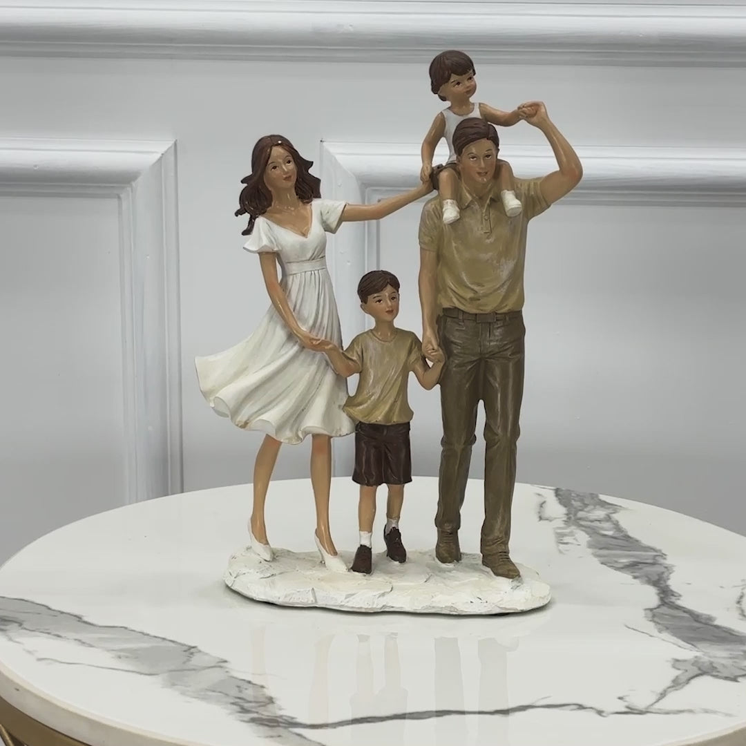 Celebrate the warmth and unity of family with our Elegant Family Resin Showpiece. This decorative sculpture portrays a modern family, capturing a moment of casual connection and togetherness. The figures are stylized, with a focus on contemporary fashion and pose, suggesting a scene from everyday life. The parents are depicted with a gentle, affectionate posture, while the children are shown engaged in simple interaction, emphasizing the bonds within the family. The use of neutral tones and smooth finishes adds a touch of modern elegance to the piece. This showpiece aims to serve as a symbolic representation of familial love and connection, making it a thoughtful addition to living rooms, family rooms, or as a gift for family-oriented occasions.