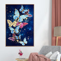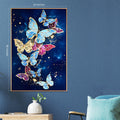 This crystal glass painting presents a composition of butterflies in flight, utilizing a spectrum of vibrant colors against a textured, deep background. The artwork focuses on the intricate details of the butterflies' wings and the interplay of light on the crystal glass, enhancing both the visual depth and the symbolic representation of transformation and beauty.
